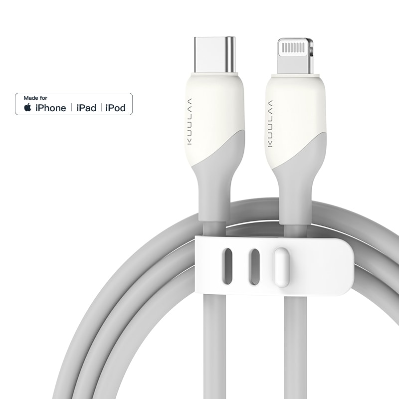 MFI Lightning u USB-C kabel SyncFlow Gen2 s PD 30W potporom - 1 m - liquid silve ...