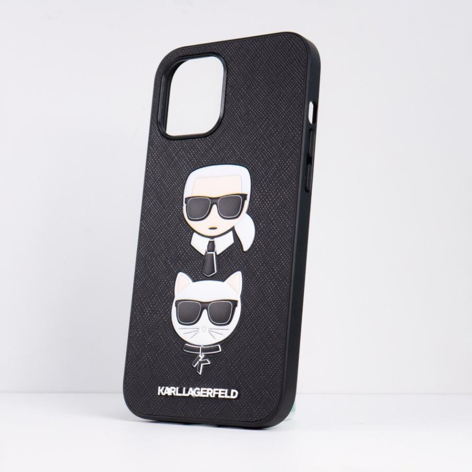 Originalna maska Karl Lagerfeld "Karl and Choupette Gripstand" Saffiano za iPho ...