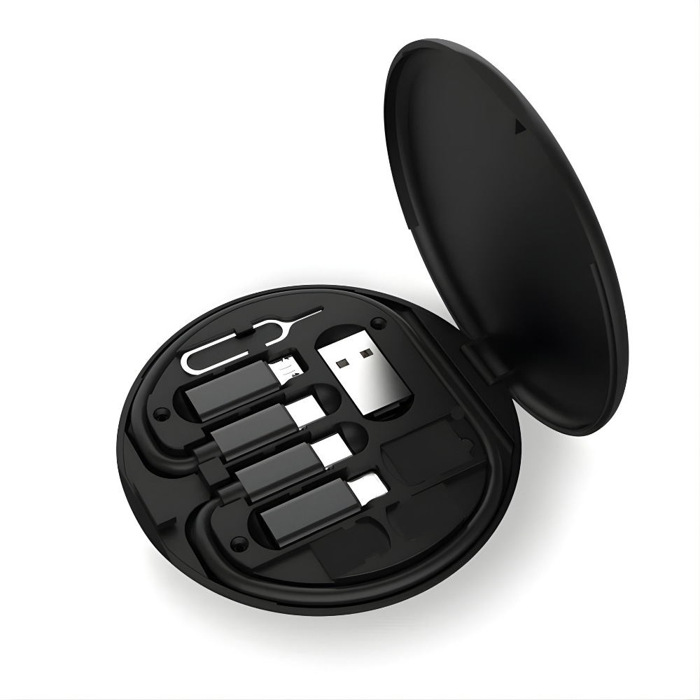 Ovaj komplet objedinjuje sve što ti je potrebno za punjenje, povezivanje i organizaciju uređaja u jednoj kompaktnoj kutiji. Uključeni USB-C kabel omogućuje brzo punjenje do 60W i pouzdan prijenos podataka, dok adapteri osiguravaju široku kompatibilnost s različitim uređajima. Uz to, uvijek imaš pri ruci i prostor za SIM kartice te alat za njihovu zamjenu. Pametan dizajn omogućuje da kutiju koristiš i kao stalak za telefon, što je idealno za rad ili gledanje sadržaja. Sve je uredno organizirano na jednom mjestu, bez viška kabela i traženja dodataka, što ga čini savršenim rješenjem za putovanja ili svakodnevnu upotrebu.